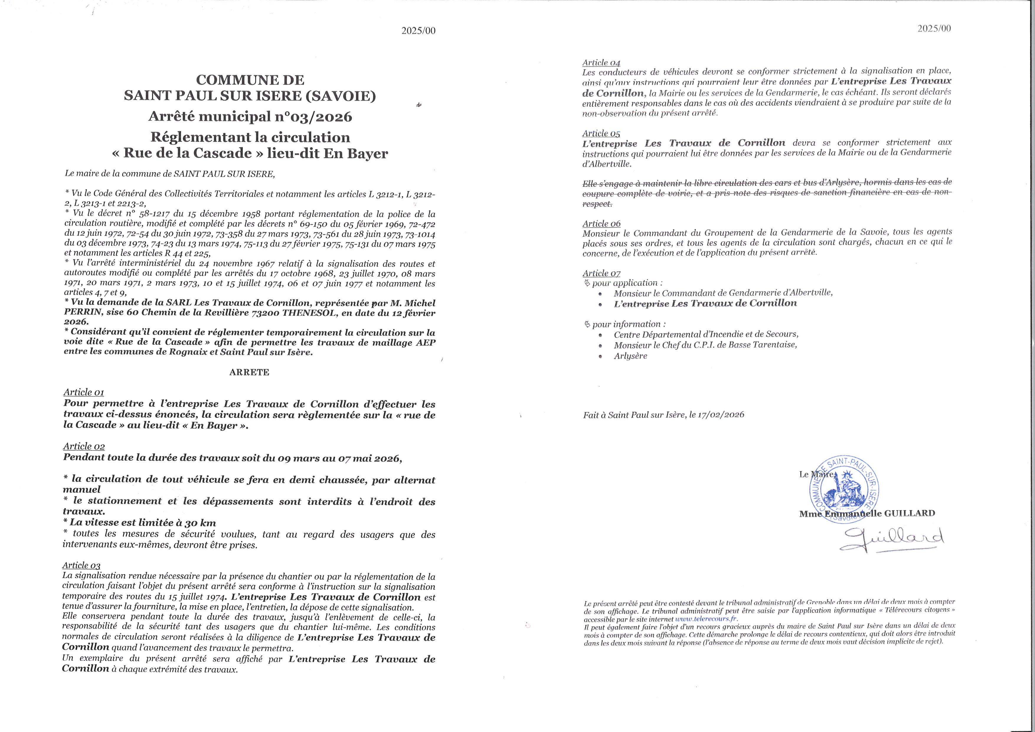 AM 03.2026 Travaux Rue de la Cascade